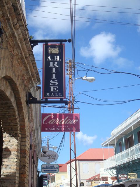 La deuxième impression forte, c'est le choc en découvrant les bijouteries alignées dans la rue principale de Charlotte Amalie sur St-Thomas. 18'000 touristes peuvent débarquer certains jours des villes flottantes qui s'amarrent dans la baie. On a assisté à la ruée sur tout ce qui brille en allant acheter notre appareil photo étanche. Impressionnant. Les USVI sont zone franche alors les vacances sont l'occasion de faire de bonnes affaires. Au bout de la rue, là où les touristes font demi-tour, nous trouvons un petit poissonnier/pêcheur parti il y a 41 ans de St-Barth mais parlant encore 3 mots de créole, quelques clochards, un semblant d'épicerie tenu par l'arabe du coin et un magasin de musique reggae... on se sent tout de suite plus à l'aise.
