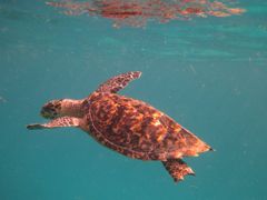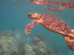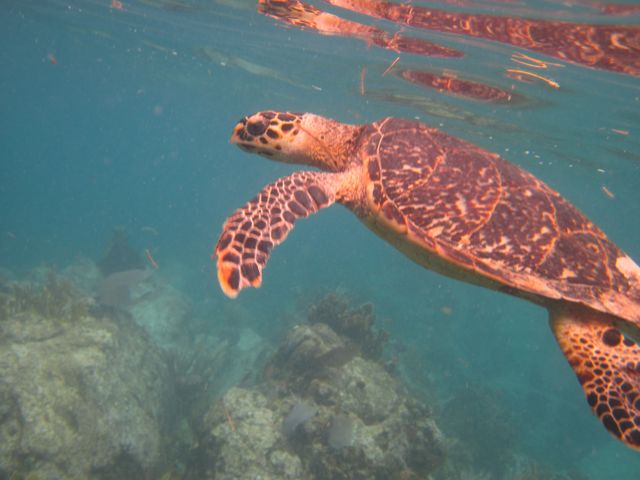 En raison des grosses dépressions sur l'est des USA, les alizés sont un peu en panne dans la région et nous devons profiter de chaque journée de vent pour nous déplacer. Nous attendons de connaître l'issue, malheureuse pour la Suisse, de l'America Cup pour lever l'ancre pour St-John. Superbe après-midi sous spi mais les poissons ne veulent rien savoir. Après St-Thomas la snob et Ste-Croix la tranquille, nous aimerions découvrir St-John la sauvage. Sur la côte sud, l'utilisation de l'ancre est interdite. Nous prions donc pour trouver une bouée libre dans Salt Pond Bay où nous arrivons en toute fin d'après-midi. Il y en a une, mais si proche de la plage que Pierre part sonder les fonds alentours pour savoir si on risque de se poser en tournant avec le vent. Il revient rassuré et nous passons une nuit bien calme, excepté les attaques de centaines de minuscules moustiques. Au matin, avant de fuir, nous partons avec palmes, masque, tuba ET appareil photo faire le tour des rochers qui affleurent au milieu de la baie. Une fois encore le spectacle est magique. Les tortues ne sont pas peureuses et viennent à dix centimètres de nous dans un véritable ballet.