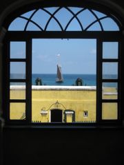 Mais il est temps de refaire un peu de voile. Notre fier coursier s'impatiente. Cap sur Ste Croix (on dit "Sint Croy") avec un joli bord de près de 35 nm. Nous découvrons Christiansted, petite ville endormie à l'abri d'une grande barrière de corail. Son vieux fort, la maison de la douane, la maison de la balance et les entrepôts témoignent de son passé commerçant et international : hollandais, espagnols, britanniques, maltais, français et surtout danois se sont succédés sur cette île avant que les USA ne la rachète comme St-John et St-Thomas en 1917. Ces bâtiments historiques sont colorés et magnifiques. Je profite de la Coupe de l'America pour aller les visiter en laissant Pierre devant son ordinateur bégayant.