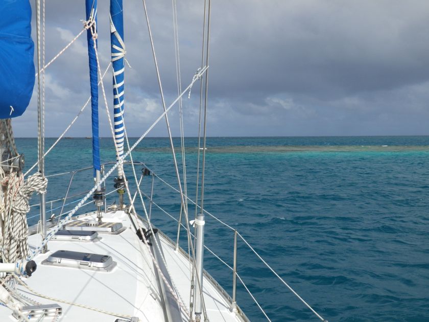 Pour sortir de Parham Sound, comme la mer est relativement calme, nous empruntons une passe étroite entre les récifs. Je stresse à mort car nos multiples cartes électronique ne sont pas d'accord entre elles... mais finalement on sort à vue, les couleurs de l'eau à midi valant toutes les cartes du monde.