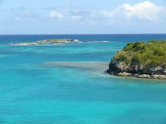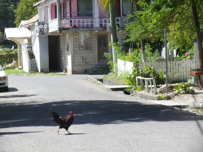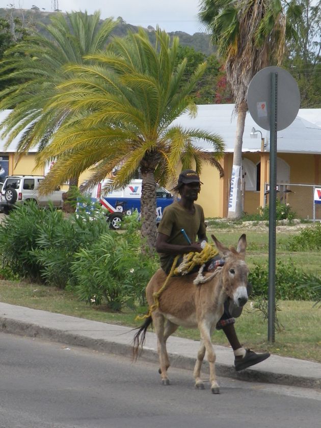 Les fonds de sable blanc sont parsemés de grosses patates de corail, très différentes les unes des autres, où se cachent de nombreux petits poissons et quelques langoustes... au grand plaisir de Pierre. C'est sa récréation après un moment de "travail" puisqu'il refait le teck à l'entrée du bateau. Et quand le silicone manque, nous traversons l'île en taxico pour retourner à Jolly Harbour en acheter. L'occasion de visiter le village très authentique de Parham où les coqs sont plus fréquents dans la rue que les gens (dixit le guide et bien vérifié !), de voir d'autres coins de l'intérieur de l'île et de réécouter un prêche dans le bus... même pas besoin d'aller à l'église.