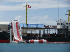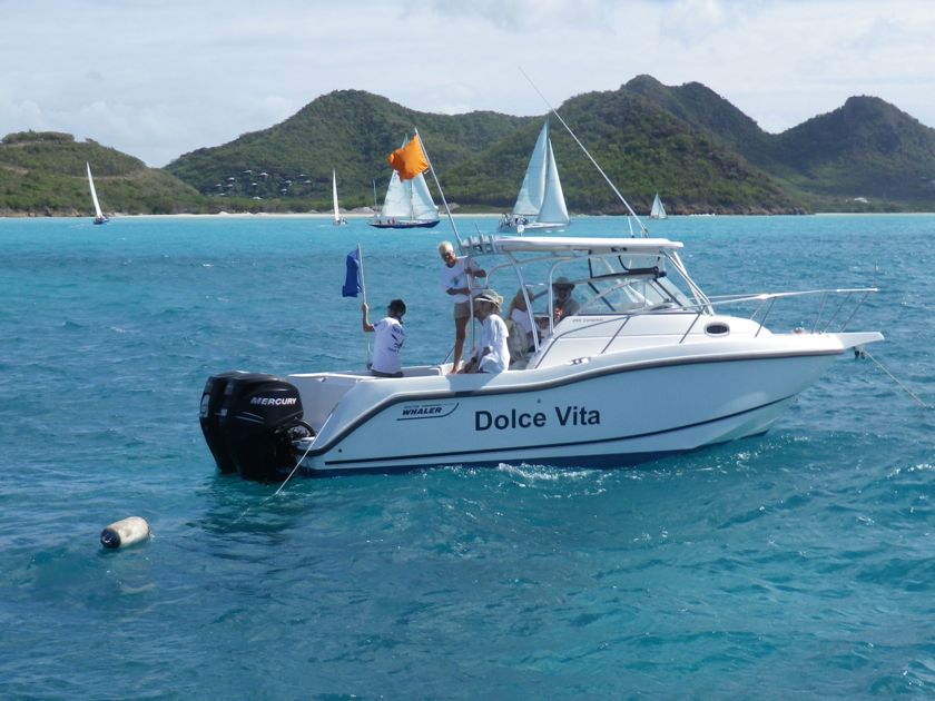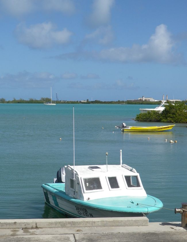 Dès notre arrivée à Jolly Harbour, à l'ouest de l'île, nous sommes dans les eaux turquoises que nous ne quitterons plus jusqu'au sud. Les clearances se font en amenant le bateau au ponton et en visitant les trois bureaux adjacents. On est sexistes à Antigua : la douane c'est l'affaire des hommes et l'immigration celle des femmes. Il faut dire que les bureaux sont si exigus que de mélanger les sexes pourrait créer des problèmes ! Ces dames sont à trois dans 10 m2 mais chacune a son job : la première contrôle le formulaire, la seconde checke les passeports et la troisième les tamponne. Tout cela avec un oeil sur la série télévisée qui passe sur une petite TV posée sur un énorme frigo, et parfois avec le lunch sur les genoux.