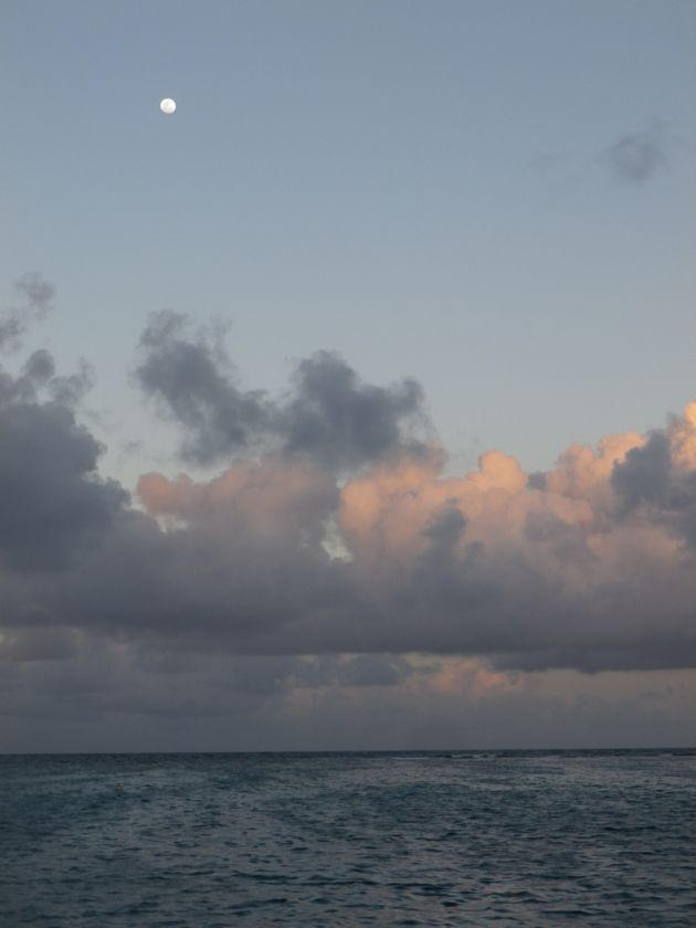 Retour le lendemain à la voile sur Jolly Harbour pour un dernier snorkelling magique (quand l'eau est claire, ce qui est rare sous le vent d'Antigua !) au dernier des cinq îlots entre Jolly Harbour et Five Islands Bay.Le corail est varié et en parfaite santé et il abrite une multitude de poissons colorés dont plusieurs poissons-anges, mes préférés. J'ai la chance de voir passer juste au dessous de moi six raies-léopards en formation de style patrouille aérienne ! Incroyable !