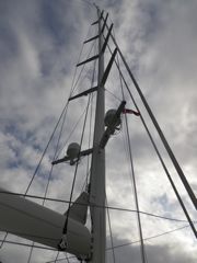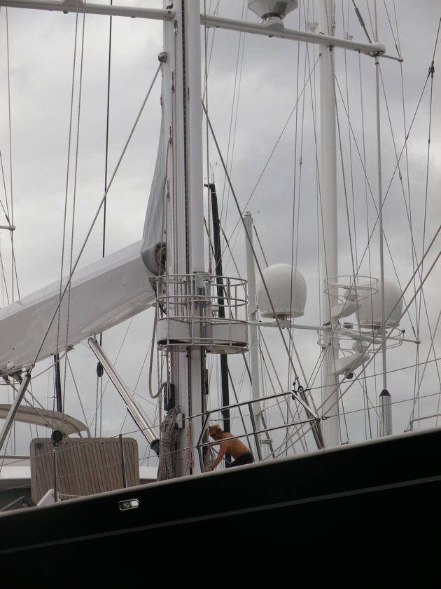 Le lendemain, nous retrouvons le monde de la plaisance de luxe et ses incroyables voiliers : un mât en carbone de 74 mètres en une seule pièce sur Kokomo ! Des enrouleurs de génois de la taille d'un homme ! Un ascenseur pour monter au mât ! Une échelle en carbone sur mesure ! C'est un autre monde.