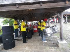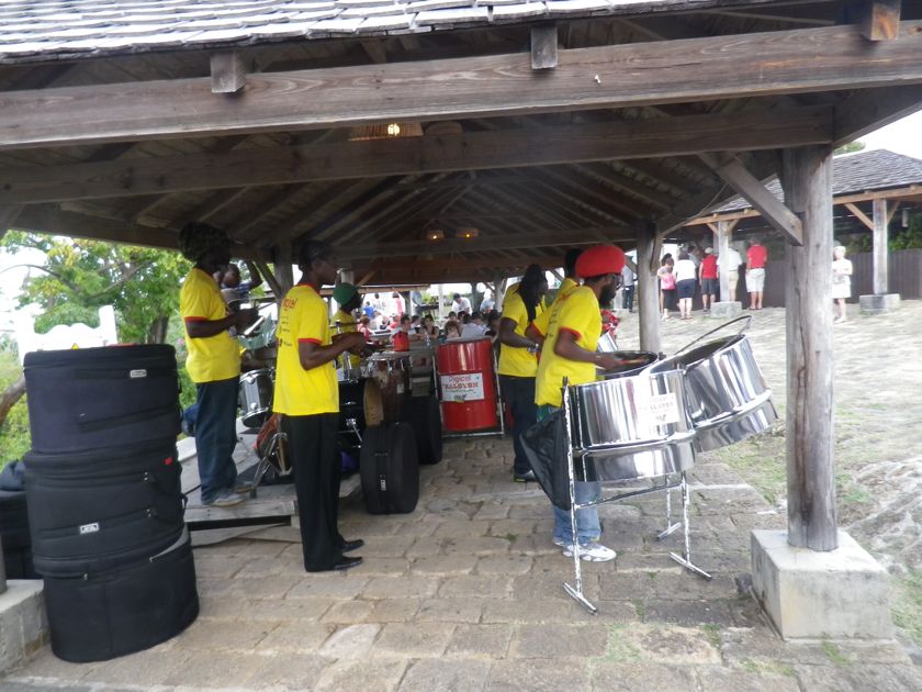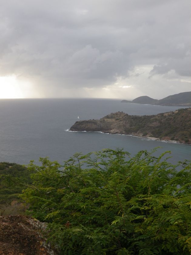 Nous ne sommes jamais montés à Shirley Heights, un ancien fort qui domine English et Falmouth Harbour et qui propose BBQ et musique les jeudi et dimanche soir au coucher du soleil. J'arrive difficilement à convaincre Pierre et finalement nous prenons un taxi près de la plage, juste derrière le mouillage. La vue est effectivement superbe. Anegada est tout petit à nos pieds. Le steel-band joue de la musique pour touristes... qui sont nombreux, surtout des québécois. Mais le soleil ne se montrera jamais ce soir-là alors que nous avons eu de très beaux coucher de soleil toute la semaine ! Pas de chance... mais on a "fait" Shirley Heights !