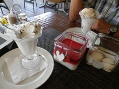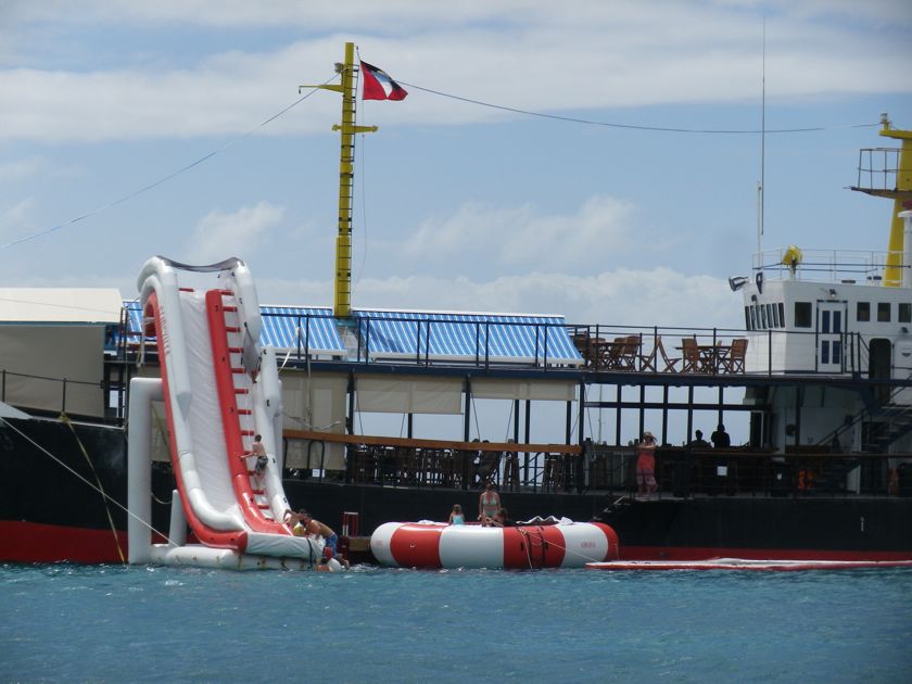 C'est la St-Valentin et nous dégustons une bonne glace sur une terrasse (la glace... la seule chose qui nous manque sur Anegada !!!) avant de profiter gratuitement et involontairement de la disco pendant une bonne partie de la nuit grâce au bateau-bar voisin !