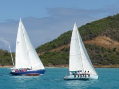 Pour la nuit suivante, nous nous réfugions Five Island Bay, immense, déserte et plus calme. Le dimanche, nous nous retrouvons entourés des voiliers participant à la régate de la St-Valentin. Petit souvenir nostalgique de mes années au CNF (Club Nautique de Founex) en voyant le bateau comité agiter ses pavillons ! Mais au style des voiliers, on ne peut pas se tromper... on est en pays anglophone ! Les bateaux classiques ont toujours la cote !
