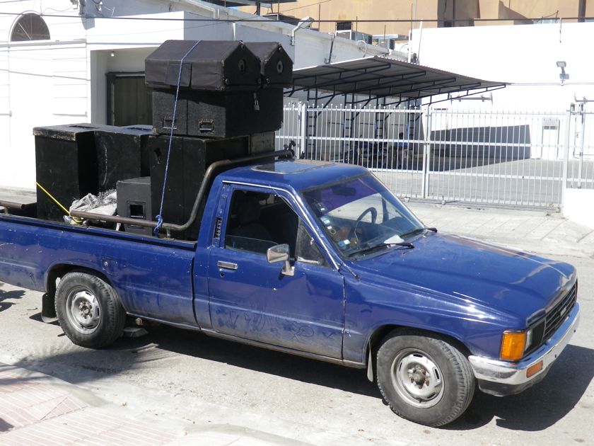 Nos aventures de barre nous ont amenés à Barahona plus tôt que prévu. Une fois remis de nos émotions, nous partons à la découverte de cette ville qu'on connaît d'abord par ses bruits. Au petit matin, très petit matin même, les coqs nous réveillent. Puis les motos, les klaxons, la corne de l'usine, et les hauts-parleurs... est-ce un prêche ? une révolution ? une alerte ? En arrivant en ville, nous croisons ces pick-up où les amplis sont entassés pour... faire de la publicité ! Un magasin a reçu un stock de jeans... toute la ville doit le savoir !