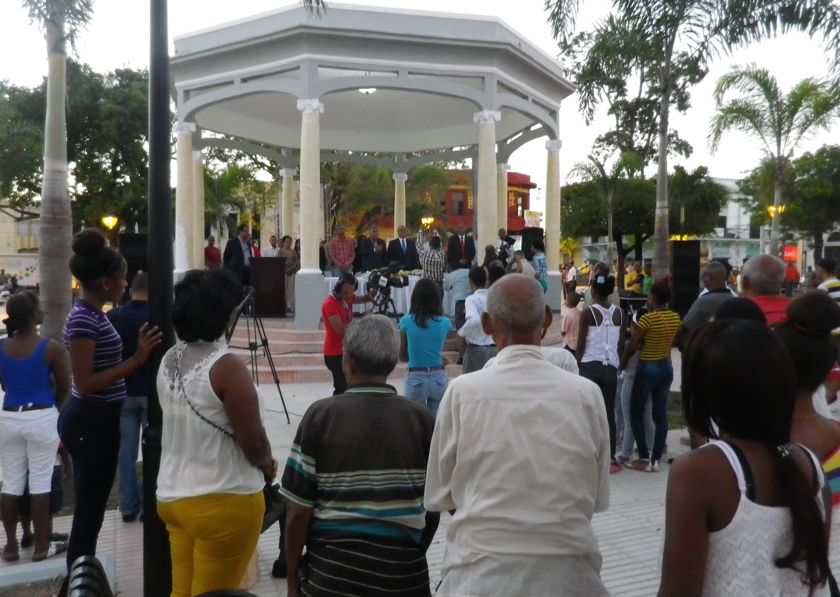En achetant du pain, on apprend que ce soir c'est l'inauguration de la nouvelle place centrale, avec grand concert de Tonio Rosario, une vedette du merengué en République Dominicaine... De retour au bateau, nous en informons nos voisins du Capoeira. Ce sont des jeunes passionnés de danses latinos, en route pour Cuba où Lucile, prof de danse, veut se perfectionner. Nous partons avec eux et assistons d'abord aux discours, avec hymne national très solennel. C'est un grand projet touristique mené par le gouverment et la mairie. Il y en aura d'autres, comme des plages réaménagées. Nous rions car, à part nous, il n'y a pas un touriste à l'horizon ! Nous oublions qu'ici touriste ne veut pas dire blanc ! Il y a énormément de Sud-Américains et aussi simplement de Dominicains.