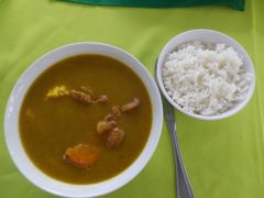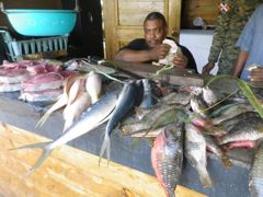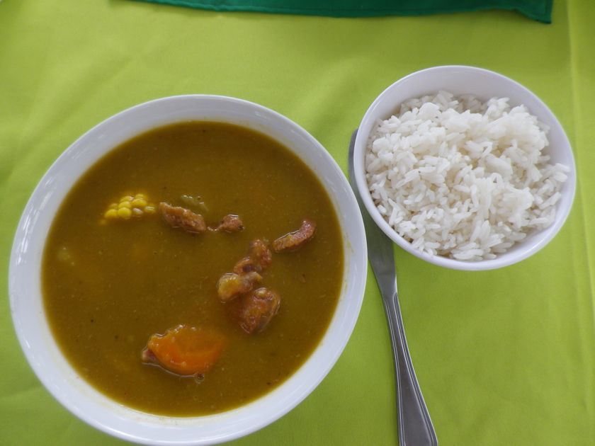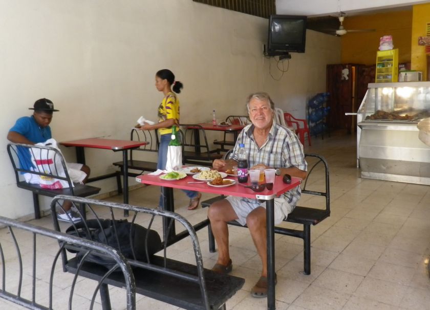 Quand nous avons une petite faim, nous nous offrons un "picapollo". Mobilier basique mais le riz est délicieux. "Arroz con moros" : du riz complet avec des haricots rouge et du poulet grillé ou en sauce. C'est le plat de base ici. A côté de l'entrée du port, nous découvrons le petit restaurant propret de Wilma, le Com Fish. Il vient d'ouvrir et offre chaque jour un plat du jour local ou du poisson grillé provenant du marché juste à côté. Nous testons le sancocho, une soupe à base de courge, de malanga, de carottes où flottent quelques tranches d'épis de maïs et de viande de boeuf. Délicieux. Et puis Wilma a un congélateur avec quelques glaces... c'est notre péché mignon !