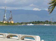 John est revenu et a réparé notre secteur de barre d'une main de maître. Nous sommes prêts à repartir et nous disons que nous avons le temps d'aller à Haïti tout de même. Nous faisons nos formalités de sortie le samedi soir, sans que la marine de guerre nous demande quoi que ce soit pour le remorquage. ouf ! On a craint le pire jusqu'au dernier moment. Seul un sinistre personnage de l'autorité portuaire a voulu nous taxer sur le jerrican de fuel que Pierre avait été acheter à la station service. J'ai sorti mon meilleur espagnol pour lui demander "porque ?" C'est une taxe du gouvernement sur le fuel, c'est la loi ! Alors montre-nous la loi ! Il a baissé les bras et a demandé juste un petit cadeau... et puis quoi encore !!!