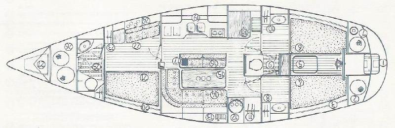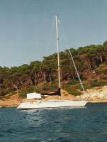 Anegada III est un SUN KISS 47 que nous avons acheté en automne 2004. Très bien entretenu et équipé par son ancien propriétaire, il correspond parfaitement à notre programme. Il est spacieux, confortable, chaleureux et en même temps performant. Cela n'a rien à voir avec les bateaux de régate que Pierre a pu barrer, c'est vraiment un bateau de croisière, mais ses lignes et ses performances restent acceptables pour un ancien régatier ! |