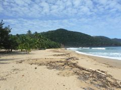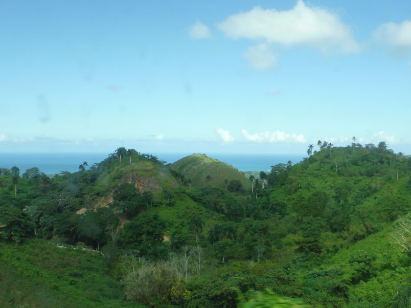 Nous prenons donc le grand bus Caribe Tour près de l'aéroport et en une heure et demie, traversant des plantations de palmiers à huile, des rizières puis une partie du parc des Haïtises, nous arrivons à Sanchez, au pays des cocotiers. Une guagua nous emmène ensuite jusqu'à Las Terrenas, montant péniblement les lacets d'une route escarpée au milieu d'un paysage sublime, forêts tropicales alternant avec des pâturages, vues plongeantes sur la baie et petits villages typiques.