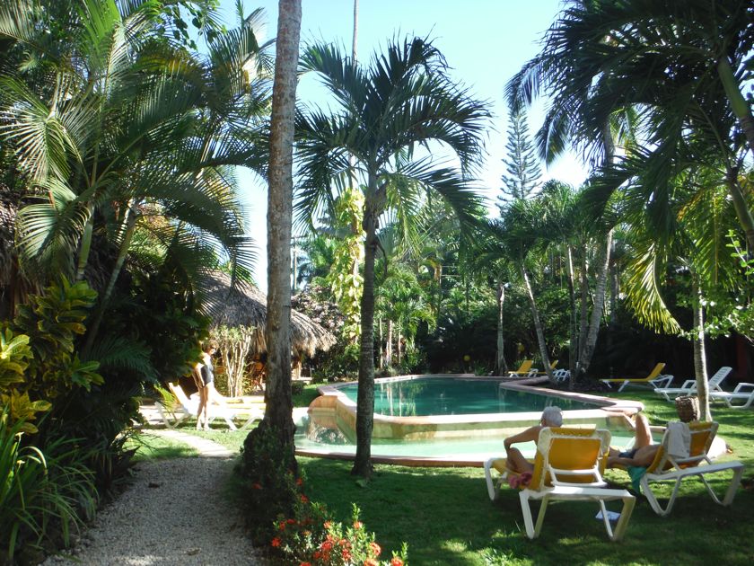 Puis nous découvrons notre hôtel, le Tortuga, une petit havre de paix dans un jardin tropical tenu par une Française. Dix bungalows avec juste le confort nécessaire, beaucoup de charme, une piscine et un bon restaurant ... c'est les vacances ! Quand nous en sortons le lendemain matin, nous sommes toutes étonnées de nous retrouver face à des motoconchos pétaradants conduits par des Dominicains... Ah oui ! Nous ne sommes pas en France !