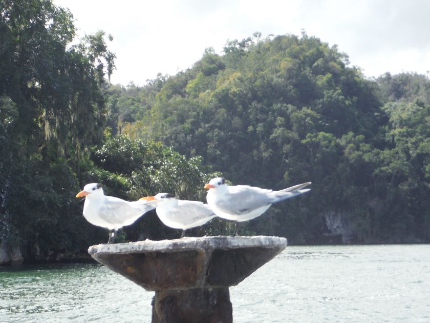 Nous retournons à Sanchez avec le minibus de Flora Tours puis une lancha rapide nous emmène à travers la baie jusqu'au superbe parc des Haïtises. Ce parc est formé de mangroves et de mogotes, des formations géologiques creuses à la base taillée par la mer. La végétation qui y pousse se satisfait de peu puisque la terre y est rare. Nous slalomons dans ce paysage magique, un peu vite à mon gré, plus habituée au rythme lent du voilier qu'à celui d'une lancha aux moteurs puissants !
