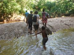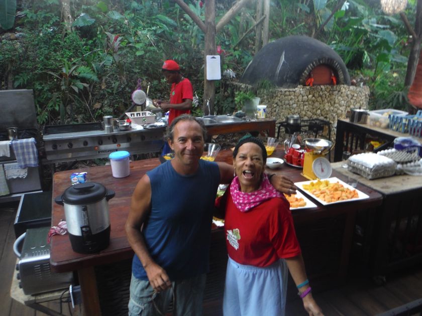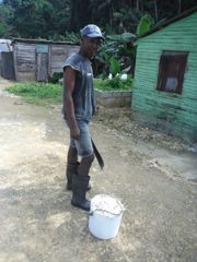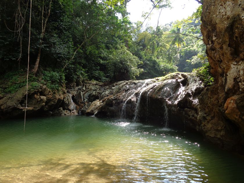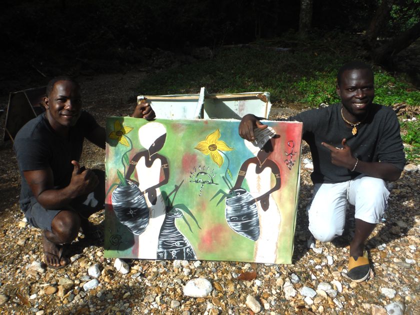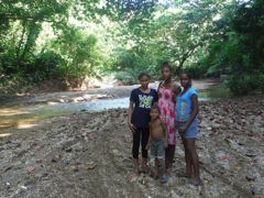 Nous discutons beaucoup avec les jeunes employés, tous aussi sympas et enthousiastes les uns que les autres, le soir autour du feu. Ils viennent tous du village tout proche ou de Samana et forment une bonne équipe. Près de la cascade, Wilson le Haïtien vend ses toiles avec le soutien de Chalo. A côté, le pont susupendu nous amène de l'autre côté de la rivière sans se mouiller les pieds cette fois !