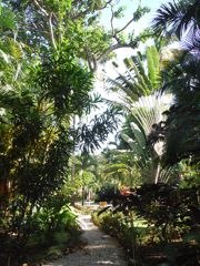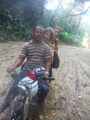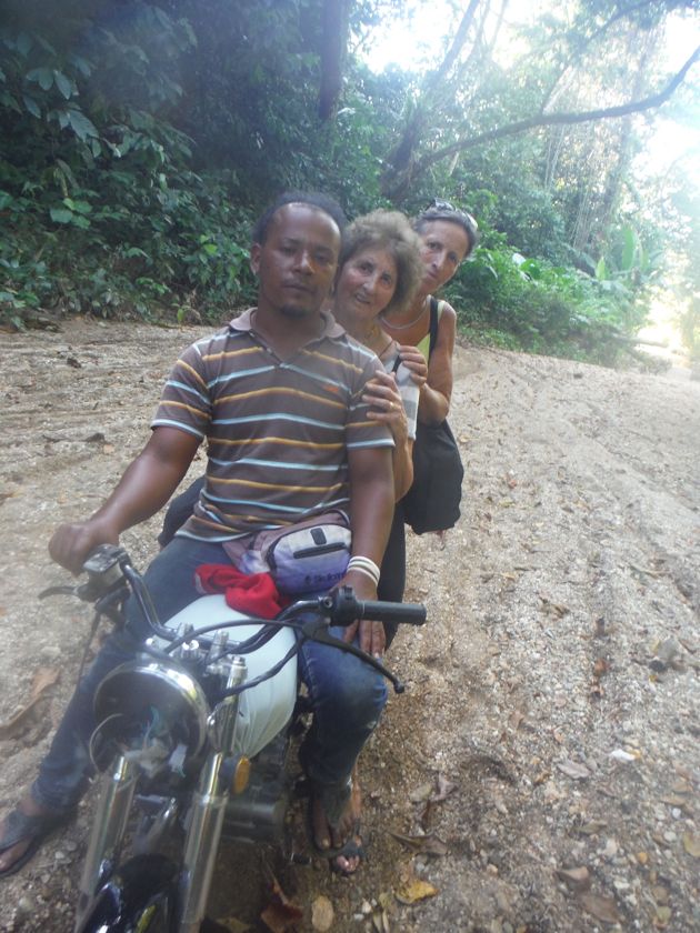 En fin de journée, le retour est épique puisque le conducteur du montoconcho veut absolument nous emmener le plus loin possible. Il emprunte les marches pour aller à la rivière sans nous faire descendre de la moto, puis la traverse en roulant ! Maman n'apprécie pas du tout l'aventure et nous finissons par exiger qu'il s'arrête et nous laisse continuer à pied ! Nous retrouvons la végétation luxuriante et le sourire de tous les employés.