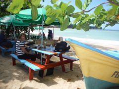 Nous voici presque en France ! Las Terrenas n'a plus grand chose de dominicain... Les hôtels et complexes se suivent sur le bord de mer et cela parle français partout... sauf à la boulangerie française ! Le "quartier des pêcheurs" est bien trop léché et luxueux pour les vrais pêcheurs, qui ont heureusement déménagé un peu plus loin sur la plage. On y déguste de bons anneaux de calamars frits en attendant l'ouverture de Flora Tours à qui j'ai réservé deux excursions avec guide français pour que maman en profite au maximum.