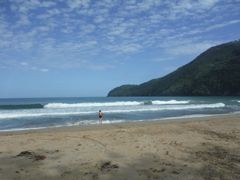 La plage est sauvage à souhait, avec juste deux petits restaurants. Elle nous enchante et même si nous n'osons pas trop nous aventurer dans les vagues, dues à la houle du nord qui sévit ces temps, nous la parcourons pour digérer notre poisson grillé.