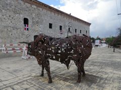 Lors de notre seconde visite à la capitale, nous passons un long moment dans le musée des Casas Reales qui retrace bien la découverte de cette île par Colomb. Isabella a été la première bourgade au nord de l'île mais à son second voyage, Colomb n'y a retrouvé que des cendres et des cadavres. Il a alors fondé La Navidad, toujours au nord mais c'est au sud, à St-Domingue, que s'est vraiment développée la colonie avec la première maison en dur (maison de la Corde), le premier hôpital, la première rue digne de ce nom (Calle de las Damas), la première cathédrale... et j'en passe ! De St-Domingue sont parties ensuites d'autres expéditions pour découvrir les îles et terres voisines.