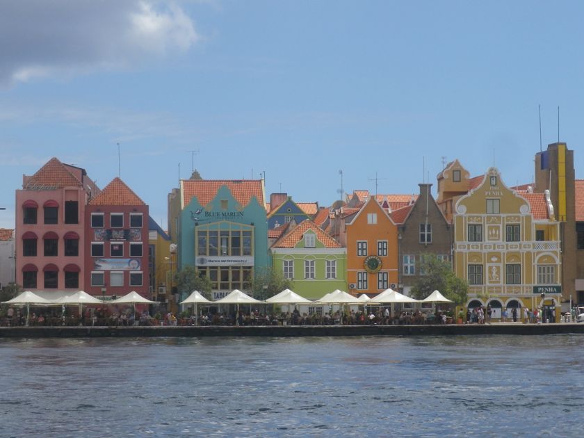 Le seul véritable attrait de Curaçao (en dehors du chantier pour sortir le bateau), c'est Willemstadt, ses maisons colorées, son pont pivotant, son marché. Tout cela est bien encombré quand un, deux ou trois paquebots sont à quai ! Mieux vaut alors se réfugier dans Otrobanda, le quartier "de l'autre côté" du pont, à l'ambiance plus sud-américaine et aux façades moins "léchées". On y a dégoté un petit restau très local et très bon marché, l'hôtel Estoril, parfait pour manger avec les autochtones. Si vous aimez les tripes ou la langue, c'est au menu ! Mais il y a aussi du poulet ou des nouilles indonésiennes !