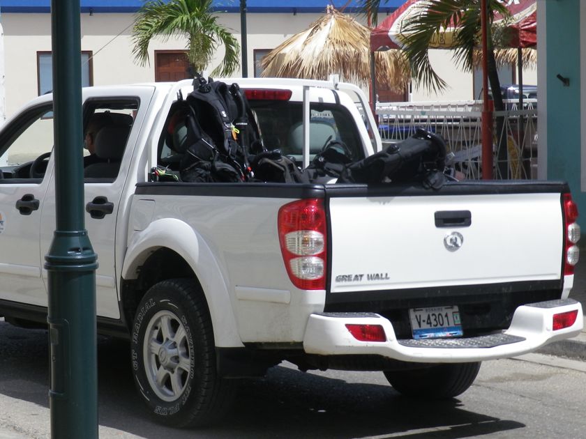 En retrouvant le bord de mer, nous observons les plongeurs. Contrairement aux Antilles où il faut un bateau, donc un club pour aller sur les sites, ici il suffit de louer un pick-up et des bouteilles. On charge le matériel à l'arrière et on choisit parmi la petite centaine de lieux notés d'une pierre jaune en bord de route. C'est vraiment dommage que Pierre ne plonge pas en raison de problèmes d'oreilles. Seule je ne peux pas m'aventurer bien loin, donc je renonce.