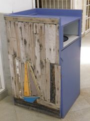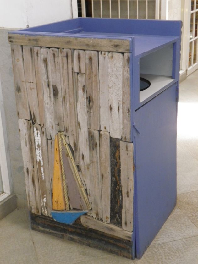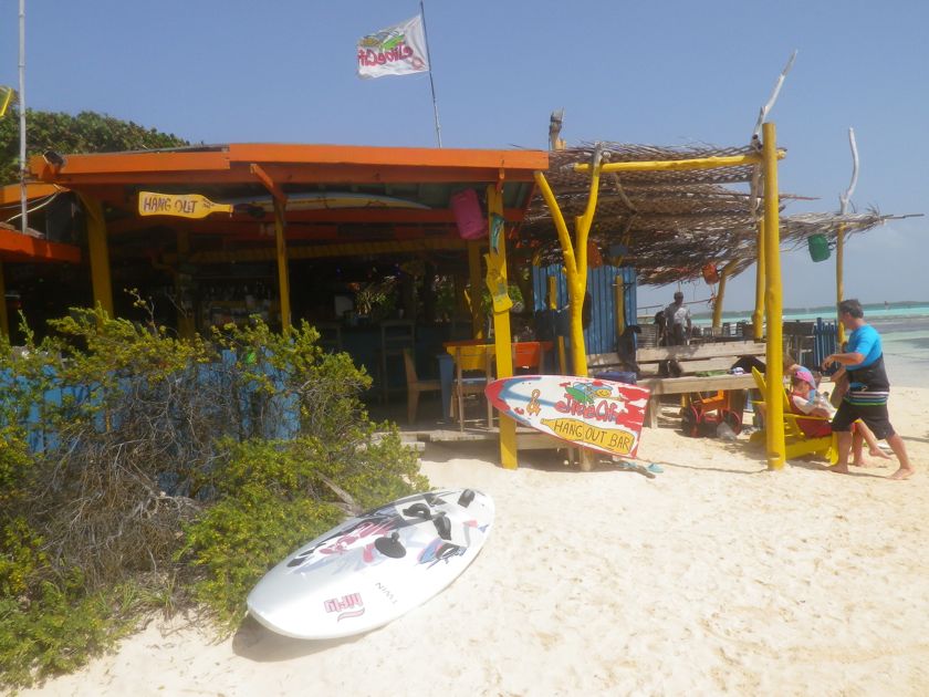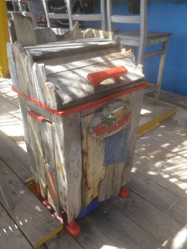 Les lagons sont le paradis des windsurfeurs que nous regardons évoluer avec envie depuis un petit bar bien sympa. Ici comme sur toute l'île, le bois flotté est réutilisé avec bonheur dans la décoration. Du coup les poubelles se camouflent en oeuvres d'art !