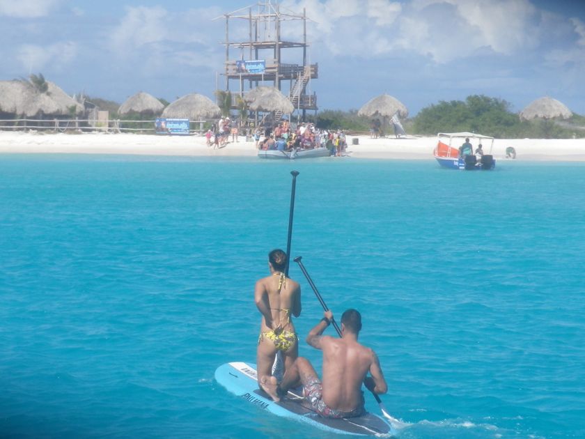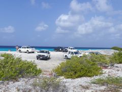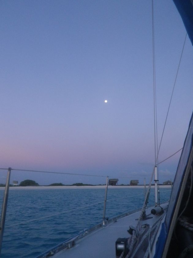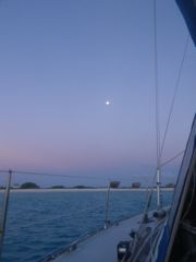 Après les formalités de sortie obligatoires, même entre les îles ABC, nous partons pour Curaçao, distante de 30 milles. Entre les deux, l'îlot de Klein Curaçao nous fait de l'oeil. On n'est pas sensé s'y arrêter sans avoir fait les entrées à Curaçao mais c'est le week-end et on trouvera bien une excuse si jamais ! Nous souhaitons voir si cela vaut la peine de faire 12 milles face au vent pour y revenir plus tard. La réponse est OUI... définitivement ! Pourtant nous n'y sommes de loin pas seuls le samedi soir. Il y a même des jeunes qui campent sous des abris de pailles. Et le dimanche, les habitants de Curaçao y viennent avec des bateaux de pêche au gros et des sonos parfois gênantes. Mais quand nous revenons en semaine, nous sommes le seul voilier avec quelques pêcheurs. Les day-boats débarquent leurs touristes entre 9 et 15h, moments pendant lesquels nous nous "cachons" dans le bateau. Ensuite l'île est à nous... avec en prime de magnifiques coucher de soleil et lever de lune !