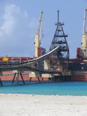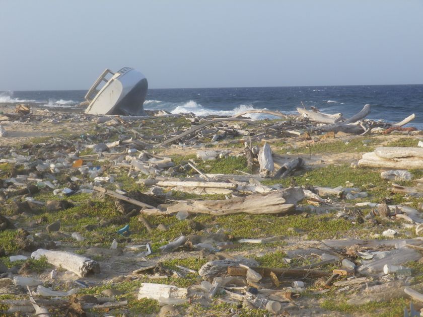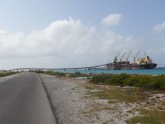 A terre, les promenades nous amènent au phare, un beau bâtiment mais bien décrépi ! Sans vitre, sans tuile, il remplit encore sa fonction et domine une lande de lichens, plantes grasses et coraux fossilisés. Gardien de l'île, il n'a pas pu empêcher les accidents et les épaves diverses en témoignent. Cargo, voiliers, bateaux de pêche sont éparpillés sur la côte au vent entre bois flottés et détritus plastiques, comme d'habitude.