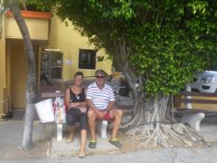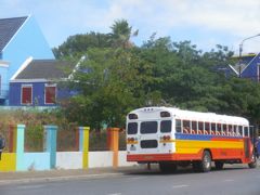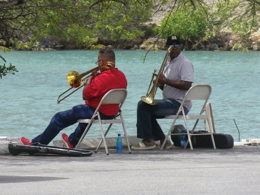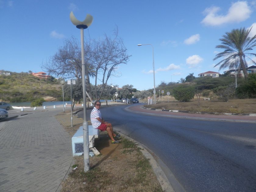 Mais nos premiers jours à Curaçao sont surtout marqués par l'attente des bus ! Quand on arrive dans une nouvelle île, il faut un moment d'adaptation avant de comprendre son foncttionnement, ses transports publics, les horaires, les lieux importants. Comme Spanish Water est éloigné de la ville, on prend le bus. Mais si on sait à quelle heure il part de la ville, l'heure de passage à l'autre bout est assez aléatoire. Heureusement il y a un banc... en plein soleil... et parfois même de la musique : deux trompettistes peu doués qui, peut-être par égard pour leurs épouses, doivent avoir décidé de venir s'entraîner au bord de l'eau. Pour aller au supermarché, on prend un autre bus, gratuit, et on a une heure sur place pour faire nos courses. Mais l'heure est élastique... alors on attend de nouveau, en en échangeant des tuyaux avec d'autres plaisanciers.