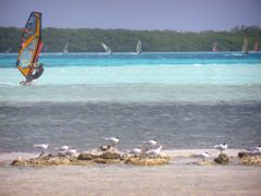 Le lagon où nous mouillons, Spanish Water, est très habité. De jolies villas les pieds dans l'eau le bordent avec leur ponton privé et parfois leur bateau de pêche au gros. Il y a aussi quelques clubs nautiques et une école de voile. Quand le vent est très fort, nous profitons du spectacle des planchistes qui font des figures impressionnantes. Avec l'annexe sommes sortis jusqu'à la mer où nous nous sommes amarrés à une bouée pour snorkeller. A nouveau des fonds superbes le long d'un tombant... mais les mini méduses ça picote !