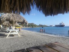 A peine débarqués au ponton du Karel Bar, nous prenons la direction du joli bâtiment des douanes. A voir les autres bâtiments de la ville, le jaune semble être une couleur traditionnelle. Les formalités d'entrée sont vite expédiées, grâce à un douanier très sympa et un agent d'immigration qui nous rejoint dans le même bureau ! C'est rare ! Après ces dix jours de vie sauvage, le bar est bienvenu et le repas "viande" au restaurant aussi. C'est déjà la dernière soirée pour Gaston qui repart tôt le lendemain sur St-Martin. Le monde nous soûle rapidement et nous ne demandons pas notre reste.