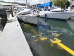 Du coup je suis complètement perdue et ne sais plus quelle langue utiliser. Je commence dans l'une, continue dans l'autre... et assiste même un catamaran compatriote en allemand pour attraper les bouées d'amarrage. C'était tellement convaincant qu'ils ont cru que je parlais hollandais (!) et que je travaillais pour la marina !