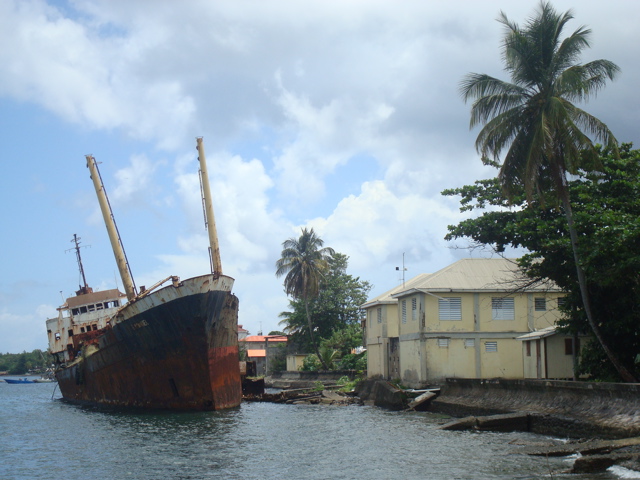 Tous les copains à qui nous avons recommandé la Dominique en sont revenus enchantés... c'est à nous d'y retourner. Nous avons déjà visité trois fois le sud avec un guide, cette fois-ci, cap sur le nord et sur la grande baie de Portsmouth. Nous retrouvons, comme lors de notre premier passsage il y a quinze ans, les épaves de cargos échoués sur la plage. Il y en a de nouvelles, comme celle qui, l'an dernier lors du cyclone Omar, est venue boucher partiellement l'entrée de la fameuse Rivière Indienne. L'accueil a toujours lieu très au large par un "boat boy" qui nous souhaite "Welcome in paradise". La différence avec notre premier passage, c'est qu'ils ont reçu des instructions pour ne pas nous assaillir et marquer le bateau des jolies couleurs de leur coque et qu'ils repartent avec un mot gentil même quand on leur dit qu'on n'a pas besoin de leurs services. Il y a quinze ans, on ne pouvait pas laisser le bateau seul pour aller visiter la Rivière Indienne. Maintenant, ce sont les boat boys eux-mêmes qui organisent une surveillance de la baie nuit et jour.