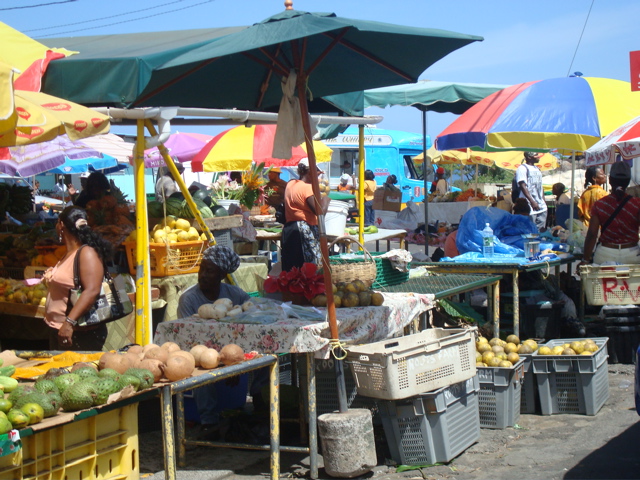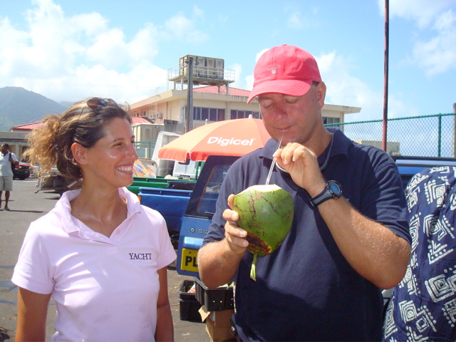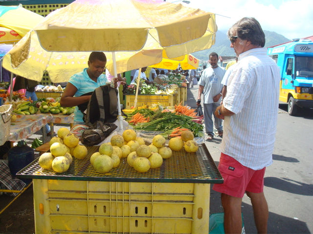 Le samedi, nous profitons de nous rendre à Roseau pour refaire les pleins de fruits et légumes mais aussi pour revivre cette ambiance colorée et parfumée. Le reggae s'échappe à plein volume du marché couvert, les doudous se cachent sous un vieux parasol et derrière leurs étals de mangues, ananas, fruits de la passion, bananes, tomates, carottes, chou, christophines, ignames, salades, cives... Les jeunes noix de coco jonchent le sol après avoir rafraîchi les passants de leur eau. Les gros pamplemousses si juteux sont à un prix imbattable, 30 ct d'euro les cinq. Pierre pourra faire des jus au petit déjeûner. Nous revenons au bateau les bras bien allongés ! Les jours suivants, je transforme Anegada en atelier confitures et chutney en testant tous les mélanges possible.