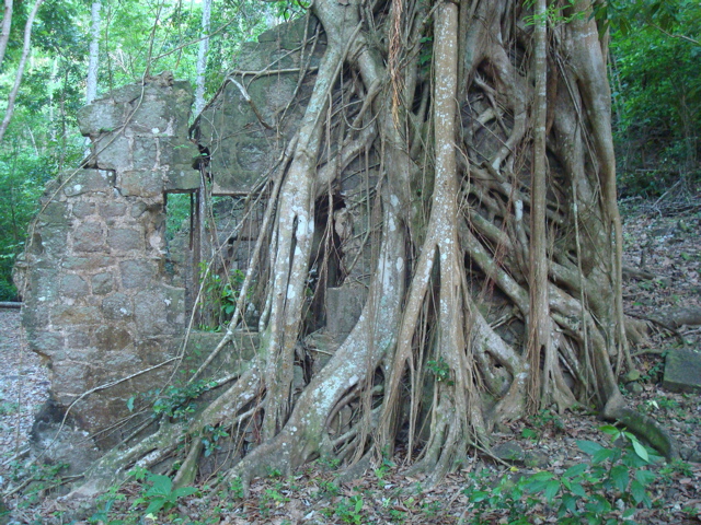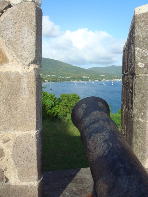 Nous retrouvons aussi Josef et Cornélia sur leur Epiphany, rencontrés en Crête en septembre 2008, puis aux Canaries. Hongrois, ils ont de la peine à s'adapter au monde noir et sont toujours sur la défensive. Nous essayons de les raisonner mais leur décision est prise, ils retraversent sur l'Europe (alors qu'ils sont arrivés en avril !) pour l'été et repartiront en automne pour passer Panama dans la foulée. Je les accompagne dans une petite ballade dans le parc national de Cabrits. Dans une forêt beaucoup moins humide que dans la montagne, nous rencontrons des petites couleuvres et des termitières. Dans un parc bien entretenu et arborisé, nous découvrons l'ancien fort Shirley et ses canons, bien restaurés, puis, dans les bois, des ruines envahies par les ficus depuis leur abandon en 1854 par les anglais.