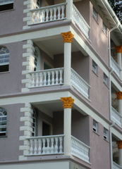 Tout au long de la route, au milieu de ce vert omniprésent, les petites cases font des taches de couleur. Ce sont mes préférées pour les photos mais pour y vivre, je pense que je choisirais aussi une maison en dur, moins typique mais plus confortable et tout aussi colorée. Les immeubles ont également droit à la palette du peintre, mais parfois c'est extrême et les corinthiens doivent se retourner dans leur tombe !