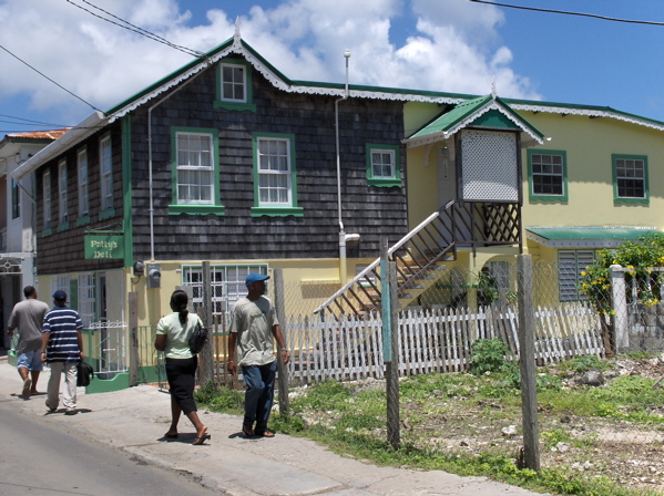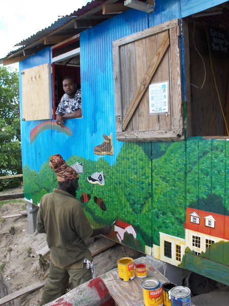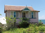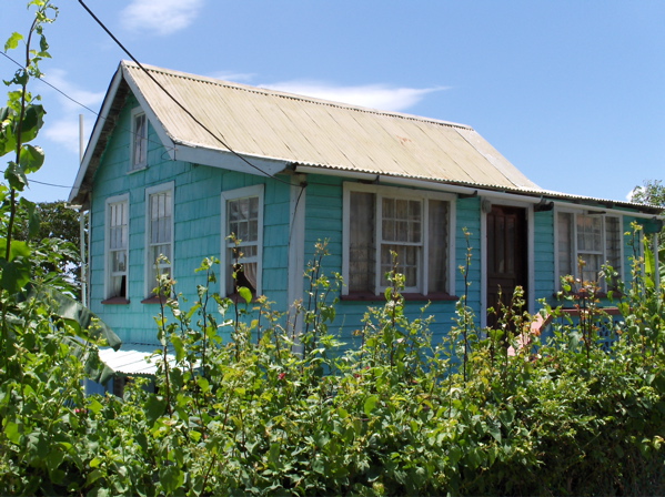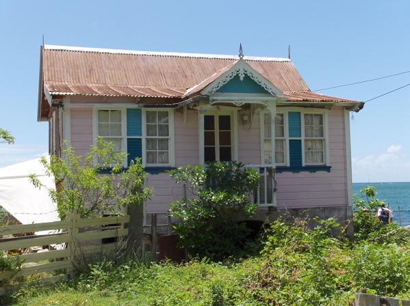 Ils construisent aussi de magnifique petites maisons très colorées, avec une ou deux faces en tavillons. A Hillsborough, la "ville" de Carriacou, un peintre rasta décore artistiquement la maison d'un autre rasta, cordonnier lui. Je n'ose pas photographier l'intérieur de son échoppe mais la pile de chaussures est aussi impressionnante que ses dreadlocks.