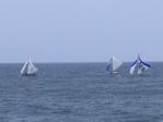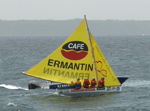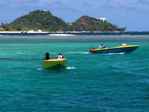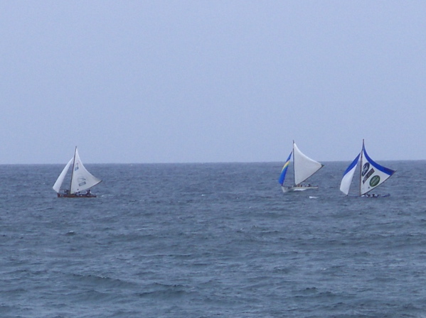 Les vacances commencent en Guadeloupe où nous retrouvons Georges et les régatiers saintois prêts pour le Tour de Guadeloupe en canots traditionnels : une semaine de régates partant de l'île de la Désirade pour arriver à Pointe-à-Pitre avec des étapes au Moule, à St-Louis, à Deshaies, à Basseterre et aux Saintes. Nous assistons à l'arrivée des 35 canots à la fin de la première étape : 22 miles acrobatiques au vent arrière dans une mer bien formée. Nos amis sont aux avant-postes. C'est impressionnant de voir la foule qui les accueille, la radio locale, les photographes, les sponsors. Plus de la moitié des canots sont neufs, construits exprès pour ce Tour qui comporte moins d'étapes de près que d'habitude.