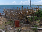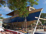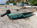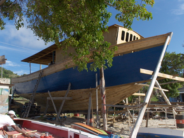 Nous n'avions jamais eu le temps de découvrir tranquillement les îles de Petite Martinique et de Carriacou. On les appelle les Grenadines dépendant de Grenade. Les habitants sont des gens de la mer très entreprenants. De tous temps, ils ont construit des bateaux pour partir à la pêche, pour faire du commerce (et même, à l'époque, de la contrebande) avec les îles voisines ou plus lointaines et pour régater. Nous rencontrons, sur un chantier de la côte au vent de Carriacou, face à la mer turquoise, un homme qui nous explique qu'il forme ses trois fils au métier de constructeur naval pour que cette tradition reste vivante après sa mort. Le bateau en chantier est destiné à un américain qui courra à son bord les régates de bateau traditionnel d'Antigua l'an prochain (photo du milieu).
