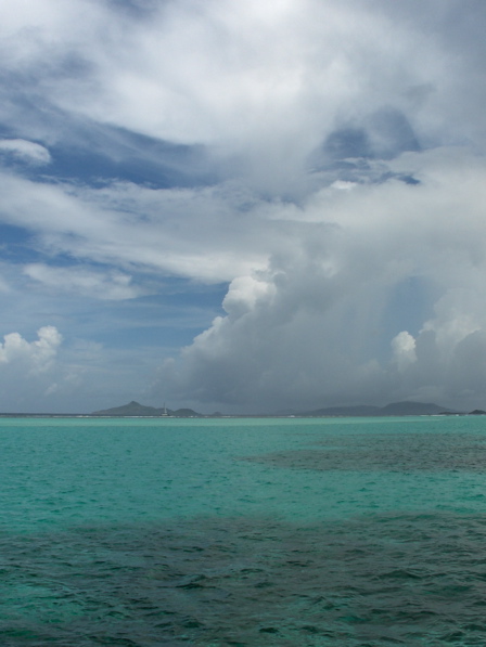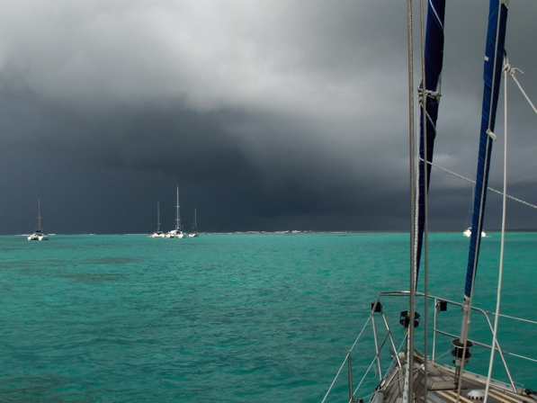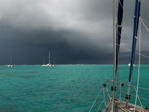 Après deux semaines de temps ensoleillé et relativement sec, des petites ondes tropicales se succèdent et nous amènent des ciels chargés, impressionnants parfois, et des pluies brèves mais intenses. Le tout pratiquement sans coup de vent, ce qui est déjà positif. Pendant la saison des cyclones, nous surveillons attentivement la météo. Notre ami Bernard a dû, l'an passé à la même époque, se réfugier dans la mangrove pendant le passage d'Emily. Malheureusement le téléphone satellite est en panne, l'ordinateur ne démarre plus... il reste les moyens traditionnels, VHF et BLU, et Internet quand nous sommes à terre (blog très intéressant sur la météo tropicale). Quand tout ceci ne suffit pas, on se tourne vers les voisins mieux équipés pour avoir les dernières nouvelles. Nous avons eu une seule petite inquiétude avec une onde tropicale qui passera finalement plus au nord et deviendra l'ouragan Chris pour quelques heures.