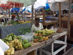 Nous faisons des aller et retour en bateau entre St-Georges et Prickly Bay, base des bateaux en voyage. St-Georges, la capitale, est une jolie petite ville. Les vieux bâtiments sont en briques avec des toits recouverts de tuiles car à l'époque, les bateaux partaient de Grenade chargés de rhum et d'épices et revenaient "ballastés" de tuiles et de briques. De nombreux toits se sont envolés en 2004 pendant le cyclone Yvan, premier cyclone à avoir touché l'île depuis 1955 ! Nous y trouvons aussi un beau marché aux légumes, un marché aux poissons et des supermarchés.