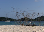 Retour sur Anegada pour un petit mois d'été tropical. Pendant les dix premiers jours, nous remettons le bateau en état : nous le "rhabillons" puisqu'il avait fallu enlever toutes les voiles et tauds pour le laisser au chantier (moins de fardage en cas de cyclone). Nous reprenons en main les réparations entreprises par les mécanos de la place... pas très efficaces. Pour le chargeur de batteries, l'histoire est rocambolesque : après quelques tests sur le bateau (tout de même 5 h de travail par un professionnel, assisté téléphoniquement par un technicien Mastervolt ), le chargeur a été envoyé aux USA... pour constater qu'il fonctionnait parfaitement. Le problème était donc ailleurs. A notre retour, en une petite heure de réinstallation et contrôles divers, Pierre constate que c'est un câble entre le chargeur et la batterie qui est défectueux ! Enfin on peut recharger nos batteries.