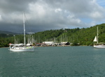 Nous poussons plus loin pour découvrir cette côte sud très découpées, et quelques petits mouillages de rêve. De nombreuses marinas, des hôtels de luxe enfouis dans la nature, de magnifiques villas et beaucoup de chantiers donnent une impression d'opulence et de reconstruction rapide. Il semble que ce n'est pas le cas dans toutes les parties de l'île et que de nombreuses familles vivent encore avec des bâches pour tout toit. Dans les quartiers plus populaires, les petites maisons font des taches très colorées dans la verdure exhubérante et répondent ainsi au rouge flamboyant des... flamboyants en fleur.