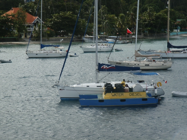 Bequia est, depuis le XIX siècle, une station de pêche à la baleine, aujourd'hui interdite. Elle se tourne depuis vers le tourisme et spécialement vers la plaisance. Il y a toujours plus d'une centaine de voiliers amarrés dans Admirality Bay et même s'il n'y a aucune marina, tout est fait pour leur faciliter la vie : livraison de fuel ou d'eau directement au bateau, "water taxi", vente de pain, fruits ou service de laverie depuis les bateaux à moteur qui sillonnent la baie. A terre, les accès Internet foisonnent, que ce soit dans les cafés ou les boutiques. Il y a plusieurs petits supermarchés mais pour les légumes, il faut prendre son courage et affronter le marché des rastas. Ils sont cinq ou six à tenir des stands bien achalandés mais ils se battent pour tous vendre quelque chose. On se retrouve entourés de quatre chevelus qui insistent lourdement pour qu'on achète leurs pamplemousses, leurs avocats, leurs tomates hors de prix. La première fois, on se fait avoir, la seconde fois, on prend son temps, on rit et discute avec eux, on use de diplomatie pour essayer d'acheter ce dont on a réellement besoin à un tarif raisonnable et si possible un achat à chaque stand !