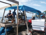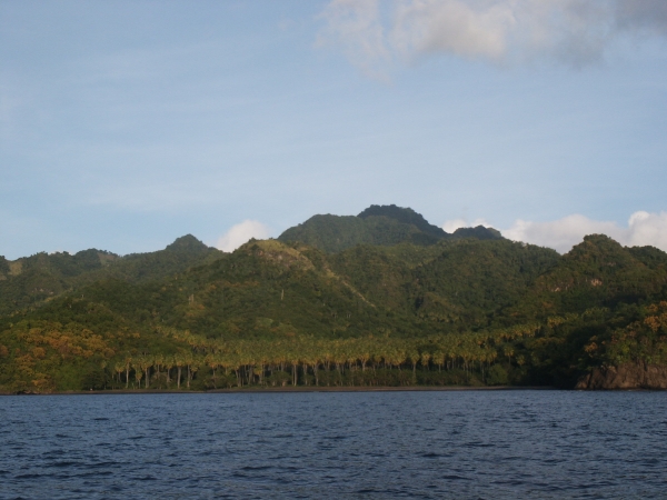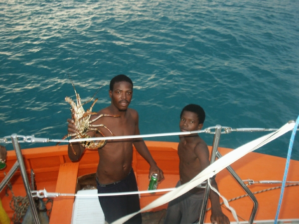 Nous avons passé le 31 à Mayereau, une autre île de l'archipel où nous étions déjà venus. Le grand changement, c'est l'arrivée de l'électricité. Une centrale a été contruite en dessus de la plage et poteaux et fils électrique montent vers le village. C'est bien dommage pour le coup d'oeil mais certainement bien plus confortable pour les habitants. Cette île accueille régulièrement les paquebots de croisière et les chaises-longues sont prêtes, entassées sous les arbres au bord de la plage. Heureusement, le 31 nous ne sommes que quelques "voileux" à mouiller dans la baie. Un bateau vient nous proposer une langouste et nous ne résistons pas. Ce sera le plat de résistance de notre menu de fête. |