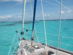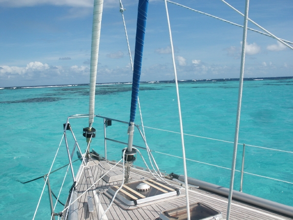 Le lendemain, nous entrons dans les célèbres Tobago Cays aux eaux turquoises. C'est l'enchantement pour l'équipage qui les découvre, mais pour nous aussi. Nous sommes très heureux que l'endroit n'ait pas trop changé depuis 2001. Le récif de corail qui protège toute la zone est encore beau, même si une centaine de bateaux est mouillée là chaque jour pendant la bonne saison. Nous avons même revu deux requins, un poisson porc-épic et de très beaux poissons perroquets. |