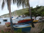 Le lendemain, depuis le sommet de Mayereau, nous avons une vue magnifique sur les Tobago Cays et sur Salt Whistle Bay, de l'autre côté de l'île. On se demande ce que les habitants de l'île peuvent bien faire de leur journée car mis à part une église, une école, quelques bars et magasins minuscules, il n'y a rien. Une ou deux voitures parcourent le seule route, très en pente, de l'île. et quelques bateaux de pêche sont tirés sur la plage. |