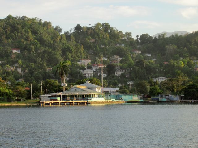 Nous passons un dernier bon moment sur La Soghia avec Jean-Luc et Ghislaine, qui ont traversé l'Atlantique sur les Açores en 2007 en même temps que nous. Ils partent aussi le lendemain sur le Rio Dulce. Puis nous allons dépenser nos derniers dollars jamaïcains en mangeant une bonne glace sur le quai comme les familles de Port Antonio qui viennent faire leur sortie du soir dans ce joli parc appartenant à la marina mais ouvert à tous. Avant de monter l'annexe sur le pont, nous allons dire au revoir à Patrick et Regina, en souhaitant avec eux que la Jamaïque sorte sans trop de mal de la crise politique qui bloque la ville de Kingston en ce moment, liée à l'expulsion d'un gros dealer.