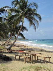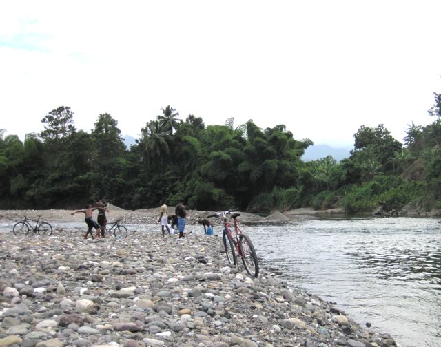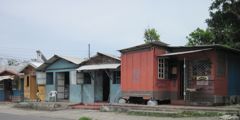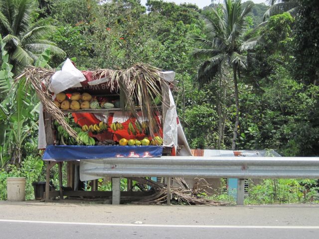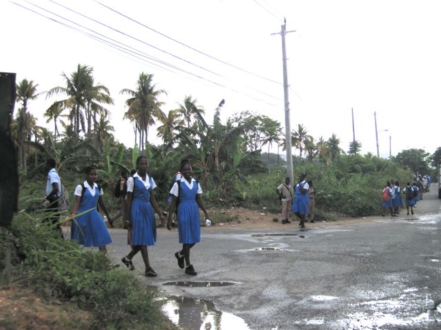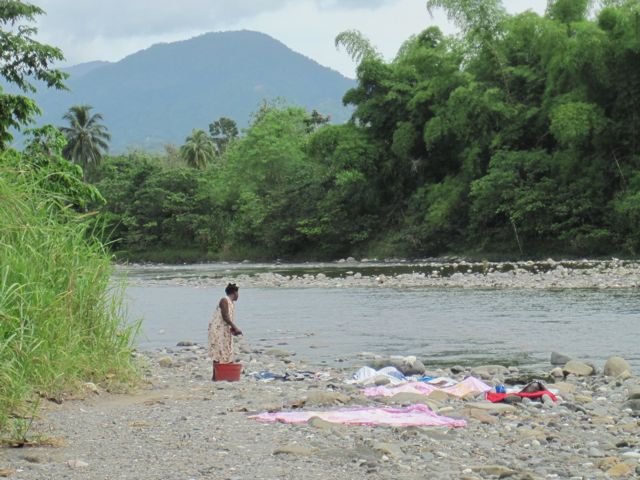 Les jours suivants, Petter et Rosanna, de Lolo, nous donnent des tuyaux sur les choses à visiter et surtout nous remettent leur voiture de location car ils partent un peu précipitamment pour la Colombie en raison d'une fenêtre météo. Nous profitons de partir un jour du côté de l'ouest, l'autre de l'est, tout en restant dans l'état du Portland qui est le plus sûr de la Jamaïque et aussi le plus verdoyant. Nous retrouvons vraiment l'ambiance antillaise des îles anglaises et cela nous fait plaisir car depuis Grenade nous ne l'avions plus vécue, les îles Vierges et Puerto Rico étant trop américanisées et la République Dominicaine déjà hispanique. C'est la saison des crabes et à Annotto Bay, où nous nous arrêtons pour manger, un homme les lâche et essaie de nous les faire attraper. C'est l'attraction sur la place ! Les enfants sortant de l'école marchent le long des routes dans leur uniforme, costume kaki pour les garçons et robe bleue à bretelles sur chemisier blanc pour les filles. En nous voyant passer, il crient "Eh ! Whities !". Les maisons sont très pauvres et souvent recouvertes de tôle ondulée brute. Du coup, notre impression de pauvreté et de décrépitude à Cuba devient très relative. Nous allons nous baigner dans le Rio Grande, une rivière qui descend des Blue Mountains et qui servait au transport de la banane, grâce à des radeaux en bambous, jusqu'à Port Antonio où elles étaient chargées pour l'exportation. De jeunes gens lavent leurs vélos et se baignent. Un femme fait sa lessive et étend son linge sur les pierres de la berge. Quand une voiture arrive et se parque à proximité, Pierre devient nerveux, se rappelle de mauvais souvenirs, et nous partons.